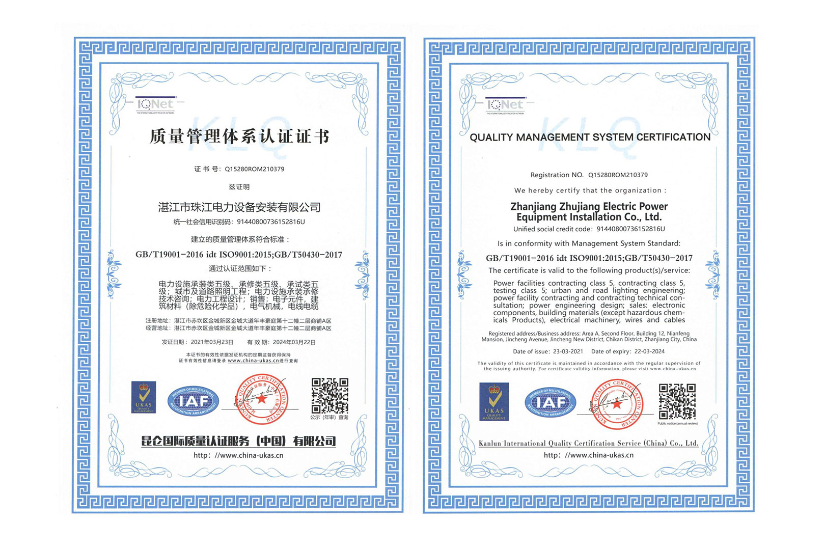 公司狠抓质量关,求信誉,谋发展,提高企业知名度,通过了《环境管理体系》、《职业健康安全管理体系》和《质量管理体系》国际质量体系认证,历年来持续有效。